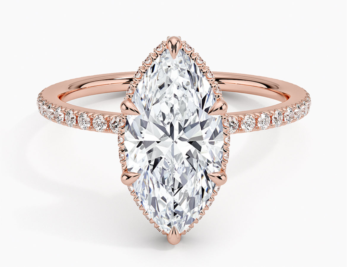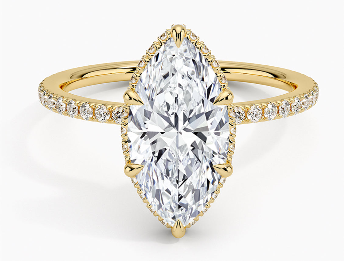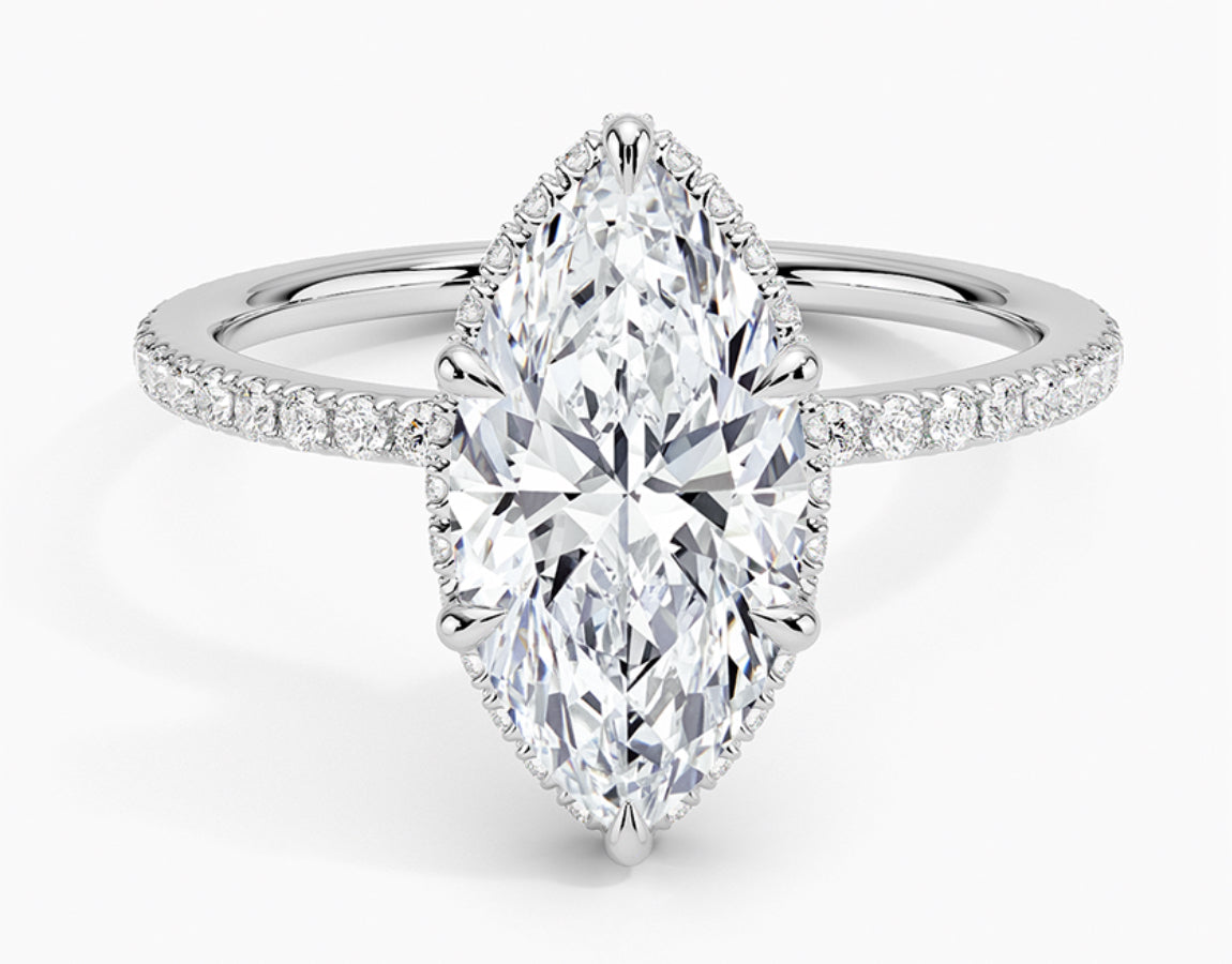 Expertly crafted with a unique and detailed design, the Amana ring features a stunning 2ct Moissanite Marquise stone and offers a sophisticated look with 925 Sterling Silver or 10k Solid White, Yellow, and Rose Gold options.