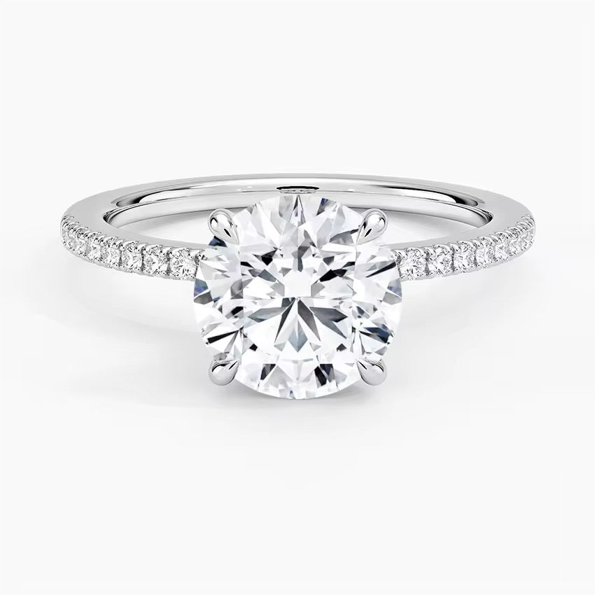 Sarah is a stunning 925 Sterling Silver ring featuring a round cut cubic zirconia stone with a hidden halo. The 1/2 eternity band adds elegance and sophistication to this timeless piece. Perfect for any occasion, Sarah is perfect for a simple but elegant look.