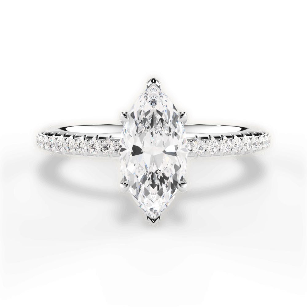 Vivienne is a stunning 925 Sterling Silver ring featuring a marquise cut cubic zirconia stone with detailed prongs and a hidden halo. The 1/2 eternity band adds elegance and sophistication to this timeless piece. Perfect for any occasion, Vivienne is sure to catch everyone's eye.